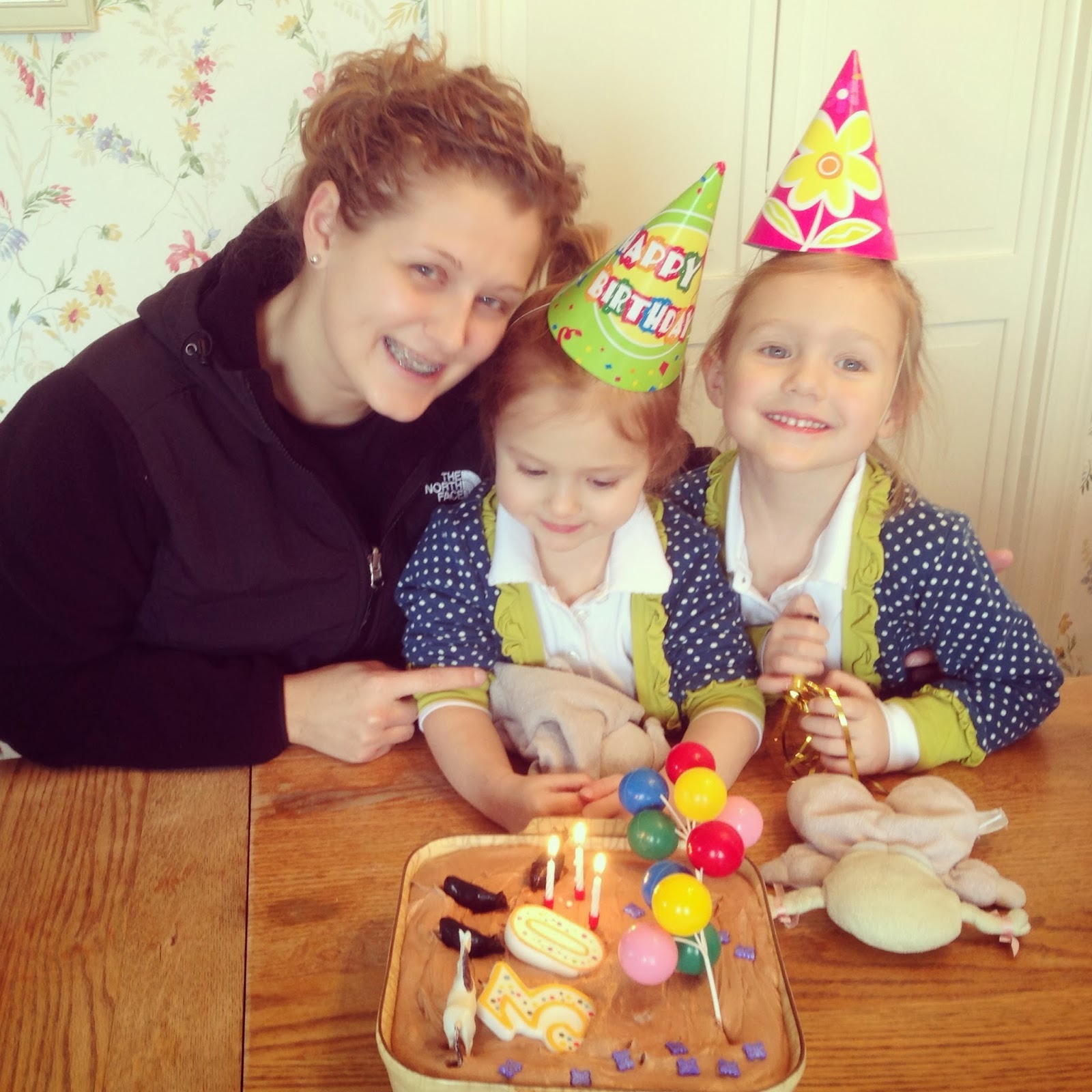 Happy Birthday to my daughter-in-law, Darci! Haleigh and Ella were with me this morning, and they were so excited to make a little party for their mommy. We found some party hats, and balloons, and we baked a cake. They were eager to decorate it, and they added plastic balloons, cows, a horse, butterfly sprinkles, and candles. Haleigh wanted me to call everyone to come over for a party! Happy Birthday Darci!